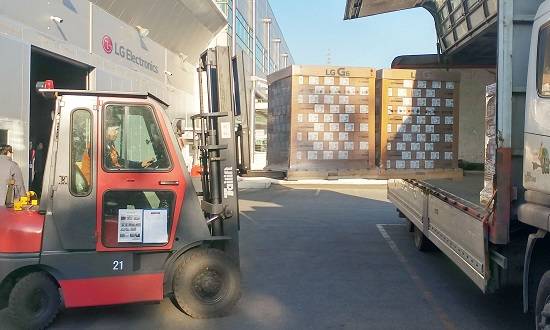 LG전자는 8일 평택 'LG 디지털파크'에서 LG G6 출하를 위해 제품을 선적했다고 밝혔다.