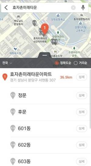 행정자치부의 실시간 데이터를 기반으로 아파트 단지 단위가 아닌 동 단위 건물의 위치 정보를 제공하는 것은 국내 처음이다.