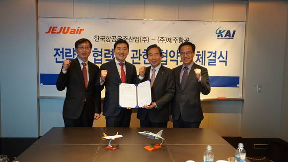 이날 협약식은 KAI 하성용 사장과 제주항공 최규남 사장 등 주요 관계자들이 참석해 양 사간 강점을 활용해 상호 윈-윈 할 수 있는 전략적 협력관계를 구축했다.