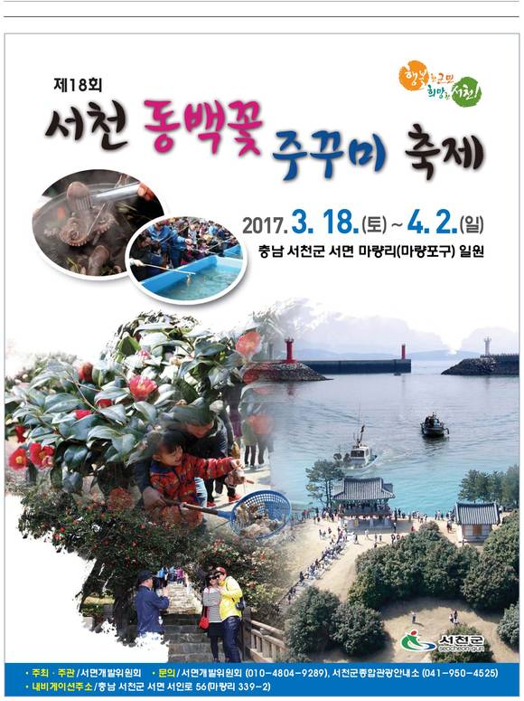 [프라임경제] 충남 서천군(군수 노박래)은 오는 18일부터 다음달 2일까지 16일간 서면 마량포구 일원에서 '제18회 서천 동백꽃·주꾸미 축제'를 개최한다.