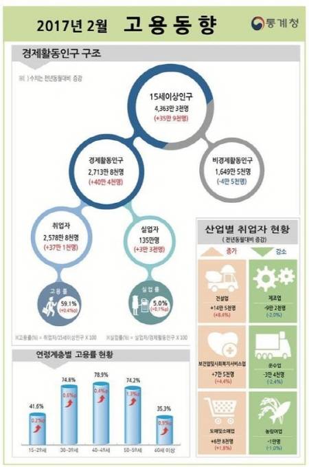 실업률도 전년동월 대비 0.1%포인트(p) 상승한 5.0%를 찍으며 2월 기준으로 2001년 2월(5.1%) 이후 16년만에 최대치까지 치솟았다.