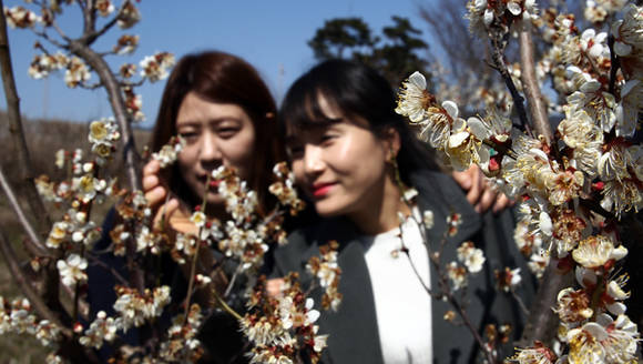 [프라임경제] 춘분(春分)을 닷새 앞둔 15일 전남 함평군 함평천변에 매화가 활짝 펴 이곳을 찾은 주민들이 봄을 만끽하고 있다.