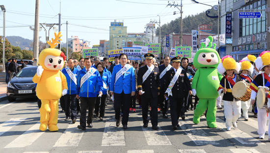 공식행사 후 박람회 마스코트인 해초, 미초와 함께 완도읍 가두행진을 하며 30일 앞으로 다가온 박람회 성공개최 염원을 담아 홍보 리플릿을 나눠주며 홍보 캠페인을 실시했다.