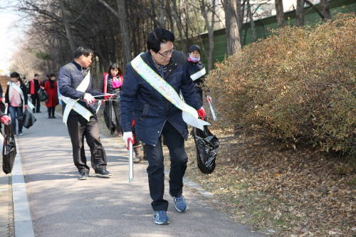 이와 관련 김윤주 군포시장은 15일 오전 군포2동 주민센터부터, 47번 국도변 안양컨트리클럽 인근까지의 구간을 지역 통장들과 함께 청소했다. 특히 환경미화원들이 청소하지 않는 법면(경사면) 등을 중심으로 겨우내 쌓인 쓰레기와 낙엽 등을 치우는 데 집중했다.