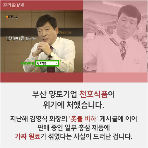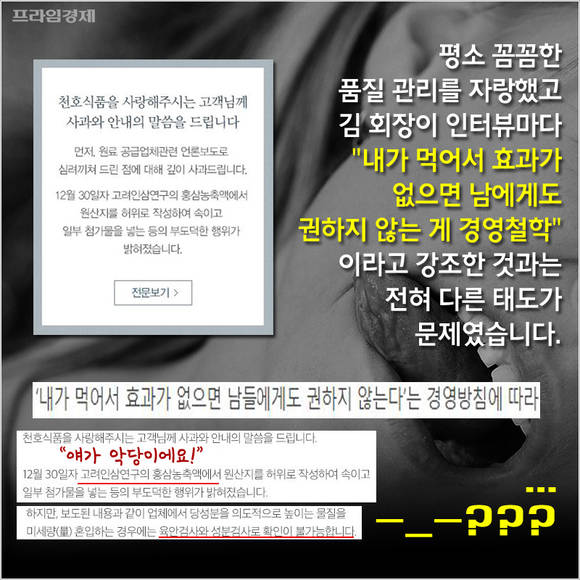 [프라임경제] 올해 초 '가짜' 홍삼 원료를 사용해 홍역을 앓은 천호식품 창업자 김영식 회장이 적반하장으로 응수했다.