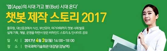 챗봇 제작 스토리 2017 행사에 대한 구체적인 정보와 행사 참여방법은 이벤트 홈페이지(goo.gl/i8UJQf)를 통해 확인할 수 있다.