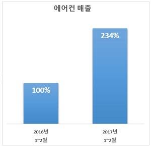 특히 삼성전자(005930)와 LG전자(066570)가 2월 전체 매출의 81%를 차지한 것으로 나타났다. 뒤이어 캐리어에어컨, 대유위니아 순으로 인기가 높았다.