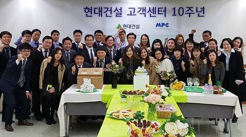 엠피씨와 현대건설 관계자들이 참석해 고객센터 운영 10주년을 축하한 이날 행사는 백선자 엠피씨 전무와 유승하 현대건설 전무의 축사로 시작됐다.