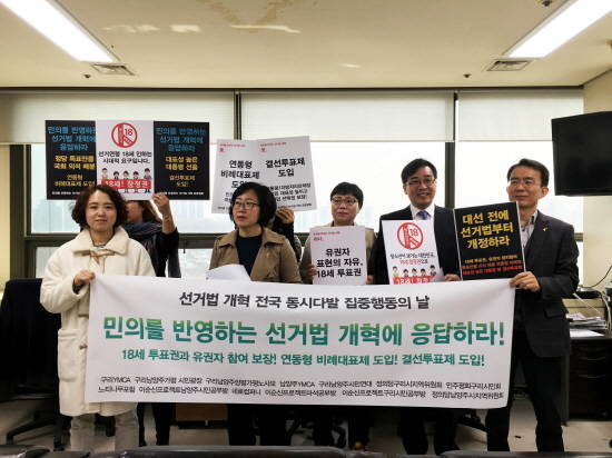 이들은 선언문에서 △선거와 관련한 시민의 정치적 표현을 억압하는 선거법 개정 △만 18세 투표권 보장 및 정치적 기본권을 제한하는 관련법 개정 △연동형 비례대표제 도입 △대통령·지방자치단체장 결선투표제 도입을 요구하며 선거법 개혁을 촉구했다.