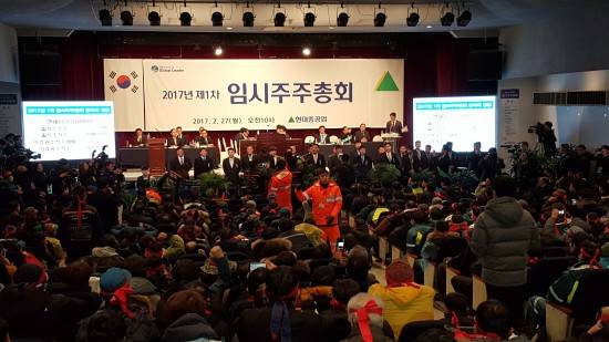이에 대해 현대중공업 노조는 지난 22일 임시대의원회의를 통해 △현대중공업 존속법인 △현대일렉트릭 △현대건설장비 △현대로보틱스 등 다음 달 1일 분할하게 될 법인들의 노조가 단일 노조로 사측 대표단과 교섭할 수 있게 하는 노조규약개정 안건을 처리하려고 했으나 대의원들의 반대로 부결됐다.