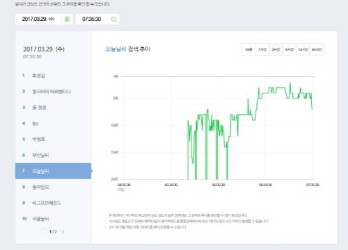 네이버 데이터랩은 29일 '급상승 트래킹' 섹션을 추가해 실급검 차트의 히스토리를 제공한다고 밝혔다.