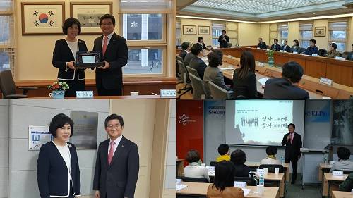 박인주 회장과 숙명여자대학교의 인연은 박 회장이 12년 전 멘토자문위원을 역임하면서 시작됐으며, 강정애 총장은 현재 제니엘 푸른꿈 일자리재단 사외이사를 맡고 있다.