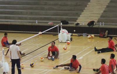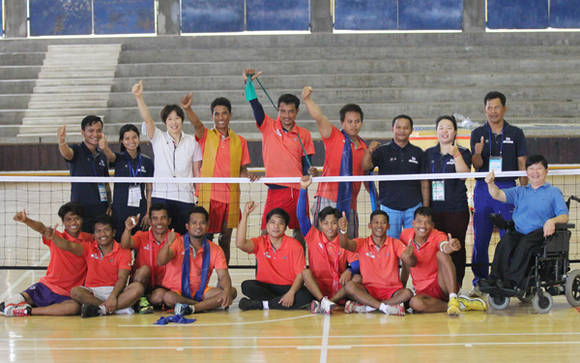 캄보디아 선수단 가운데 선수단의 규모나 기량 면에서 가장 눈길을 끌고 있는 종목은 장애인좌식배구다.