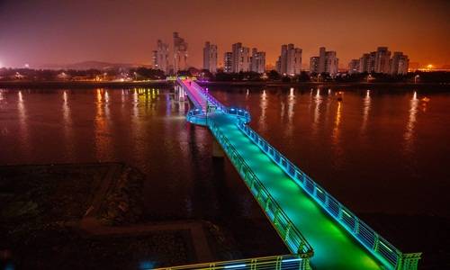 [프라임경제]광양시 중마동과~금호동을 잇는 해상보도교가 31일 임시 개통을 앞두고 점검을 위해 야간 조명을 밝혔다. 총연장 300m, 폭 4m의 규모의 해상보도교는 아름다운 야경으로 광양을 대표하는 핵심 볼거리가 될 것으로 기대된다.