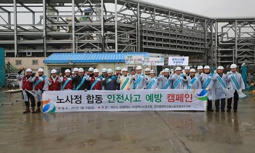 이날 GS칼텍스 여수공장에서 진행된 행사에는 주철현 여수시장과 이두희 GS칼텍스 부사장, 김재오 노조위원장, 임종길 전국플랜트건설노조 여수지부장, 협력사 사장단 등 약 40명이 참석했으며 대정비 작업을 진행하고 있는 GS칼텍스 여수공장 근로자들의 안전 의식을 고취하고 안전사고 예방 홍보 활동을 펼쳤다.