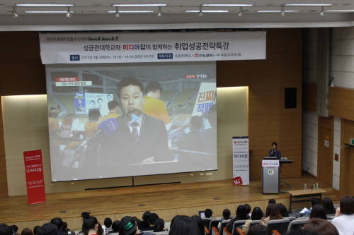 미디어 전문 취업포털 미디어잡-MJ플렉스(대표 김시출)는 지난 29일 성균관대학교 경영관에서 취업준비생 265명이 모인 가운데 '미디어잡 취업성공전략특강 시즌Ι, 미디어 취업의 문을 두드려라! knock knock!' 특강을 성공리에 개최했다.