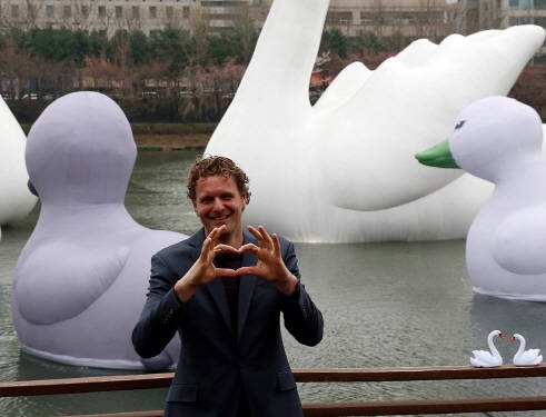 6일 플로렌타인 호프만은 기자들을 만나 관련 소감을 밝혔다. 플로렌타인 호프만은 3년 전 러버덕 프로젝트를 진행한 네덜란드 출신의 공공미술 작가다. 이번에는 세계 최초로 높이 16m에 이르는 엄마, 아빠 백조와 아기 백조 5마리(3.5~5m)로 구성된 백조 가족을 석촌호수 동호에 띄웠다.