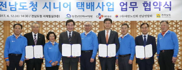 [프라임경제] 전라남도와 한국노인인력개발원, CJ대한통운, 대한노인회 전라남도연합회는 12일 도청에서 어르신들에게 양질의 일자리를 제공하기 위해 관공서로는 최초로 '시니어 택배 사업' 업무협약을 체결했다.