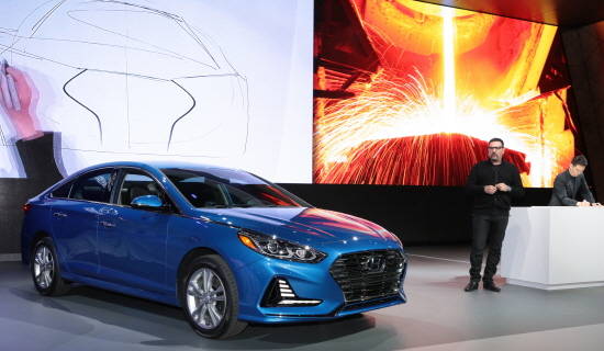 [프라임경제] 현대자동차(005380)가 12일(현지시간) 미국 뉴욕 제이콥 재비츠 센터에서 열린 '2017 뉴욕 국제 오토쇼'(이하 뉴욕 모터쇼)에서 쏘나타 뉴 라이즈(미국명 2018 쏘나타)를 공개했다.