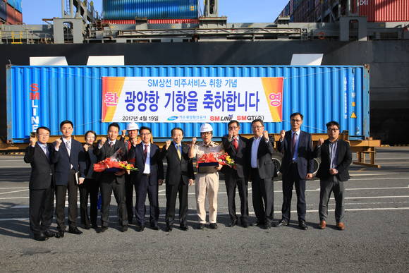 SM상선은 'SM롱비치'호를 비롯해 총 5척의 6700TEU급 컨테이너선을 투입해 매주 수요일 주 1항차씩 광양항을 거쳐 부산항-미국 롱비치-중국 닝보-중국 상해항을 로테이션하는 항로를 운영한다.