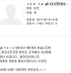이는 최근 국내 커뮤니티 뽐뿌의 한 사용자가 알려온 신도림 테크노마트에서 거래된 G6 조건인데요. 20일 기준으로는 20만원 초반으로 소폭 올랐다고 합니다.