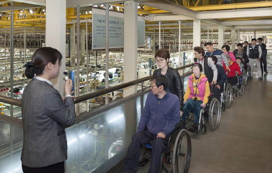 최영주 부산근육장애인재활협회장을 비롯한 회원과 자원봉사자들은 차체, 도장공장과 최종 조립라인까지 평소에 접하기 힘든 자동차 생산 전 과정을 둘러보면서 뜻깊은 하루를 보냈다.
