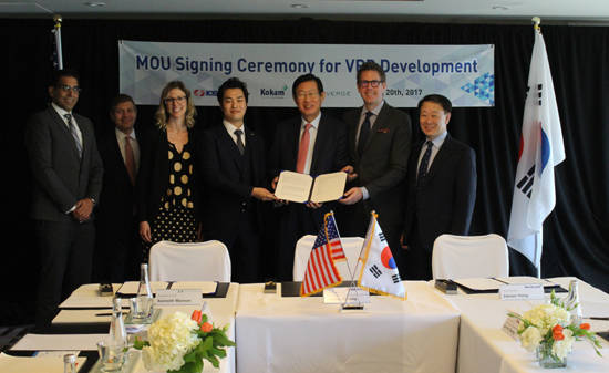 이날 MOU 서명식에는 조환익 한전 사장과 Sunverge의 CEO Kenneth Munson, KOKAM의 홍인관 총괄이사가 참석했으며, 5000만달러 규모의 1차 개발사업의 협력 대상인 LA시 수전력청과 영국 National Grid사가 참석해 사업 추진을 위한 협의를 진행했다.