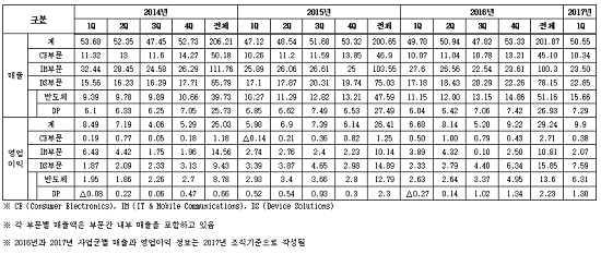 부품은 고용량·고부가 메모리 수요 강세가 지속되고 시스템LSI도 10나노 AP와 DDI 공급 증가로 실적 개선이 예상되며, OLED도 주요 거래선의 플렉서블 제품과 외부 거래선 수요에 적극 대응해 판매 증대와 견조한 이익을 유지할 것으로 전망된다.