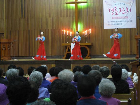 이날 경로잔치는 한산교회에서 어버이날을 앞두고 마련한 것으로 한산어린이집 어린이 재롱잔치, 평양예술단공연과 함께 정성을 가득 담아 준비한 음식과 다과, 선물 증정 등 다양한 행사로 진행됐다.