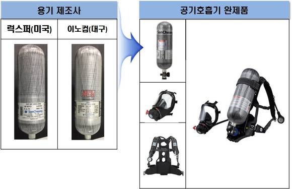 용기를 생산해 안전처에 납품하는 업체는 미국의 럭스퍼사와 국내 제조회사로 대구에 위치한 이노컴사 단 2곳 밖에 없다. 이는 산업통상자원부에 용기 제조등록이 2곳만 되어 있기 때문이다.