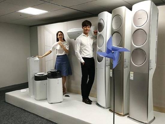 삼성전자는 지난해 인기를 얻은 '무풍에어컨'을 이번에는 벽에 걸 수 있도록 만들었어요. 삼성전자의 2017년형 무풍에어컨에는 많은 데이터를 담고 있는 인공지능 기능이 들어있어요. 방안의 온도나 습도, 환경 정보는 물론이고 에어컨을 사용하는 사람의 습관도 분석해서 '자동냉방' 으로 에어컨을 켜면 이런 정보가 반영된다고 해요.
