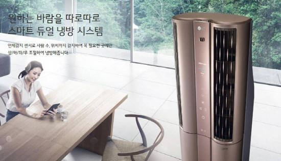 LG전자는 사람들이 있는 곳만 시원하게 해주는 '휘센듀얼 에어컨'을 만들었어요. 사람이 어디에 있는지 위치를 찾는 기능을 넣어서 에어컨이 스스로 사람이 있는 곳으로 알아서 바람을 보내 준다고 해요. 더위에 지친 사람들이 더 빨리 시원해 질수 있대요.