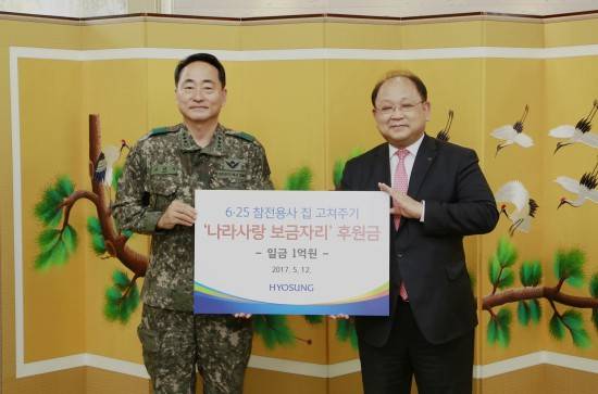 한편, 효성은 호국보훈 활동의 일환으로 국립서울현충원·국립대전현충원 등과 1사1묘역 협약을 맺고 전국 사업장의 임직원들이 묘비 닦기 및 헌화 활동 등의 자원봉사를 진행 중이다. 또 미국 현지법인인 효성USA에서도 6·25 미군 참전용사와 가족에 대한 초청 행사를 개최하고 있다.