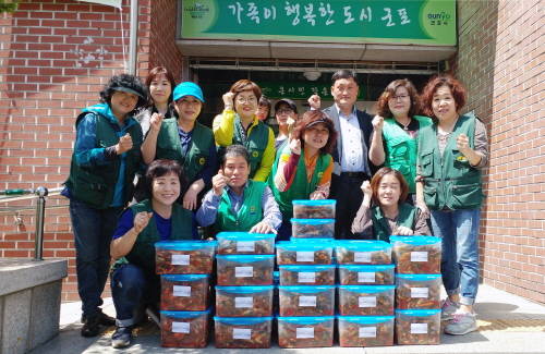 [프라임경제] 15일 군포시 궁내동 주민센터 주차장이 김치 제작소로 변신했다. 궁내동 주민센터가 가정의 달 5월을 맞아 지역 새마을부녀회와 협력해서 이웃돕기 김장을 진행, 얼갈이 80단과 열무 80단을 사랑의 김치로 만들었다.