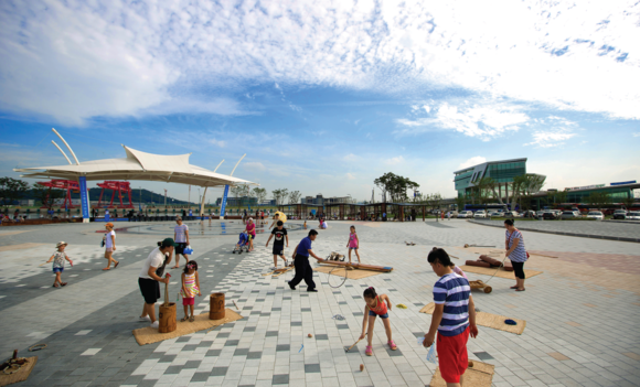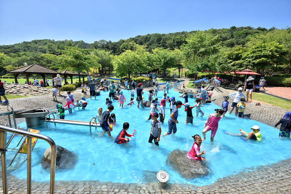 또 원목으로 만든 장난감과 가벼운 수납장까지 제작할 수 있는 목공체험장도 인기다. 체험장 외에도 물놀이장, 조형분수, 비탈놀이시설, 연못, 야생초 화원과 공원을 감싼 산책로는 도심을 떠나 심심의 피로를 말끔히 씻어 주기에 충분하다.