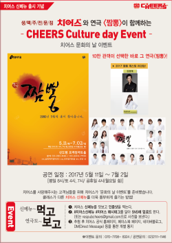[프라임경제] 생맥주 전문점 프리미엄 레스펍 치어스는 연극 '짬뽕'과 치어스 컬처데이 이벤트를 진행한다고 19일 밝혔다.
