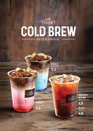 카페띠아모의 콜드브루 커피는 총 4종이며 정통 더치 방식으로 추출한 '에티오피아 예가체프' '케냐AA', 더치라떼 종류인 '더치 오션' '더치 썬셋'으로 구성됐다.