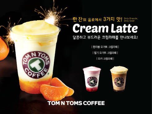 탐앤탐스의 크림라떼는 '한라봉 요거트 크림라떼' '딸기 요거트 크림라떼' '모카 크림라떼'로 구성돼 있다. 한라봉 요거트 크림라떼는 상큼한 한라봉 퓨레와 요거트 우유, 달콤한 망고 크림이 어우러지며, 딸기 요거트 크림라떼는 남녀노소 누구나 좋아하는 딸기를 듬뿍 담았다. 한편 모카 크림라떼는 초콜릿과 탐앤탐스의 스페셜티 블렌드 커피를 담고 초코 크림으로 마무리했다.