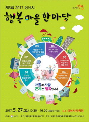 이외에도 초등학생 60가족(약 200명)이 참여하는 '내가 본 행복 마을' 그리기 대회, 성남시민 120팀(약 300명)이 참여하는 자원 절약 벼룩시장이 마련된다.