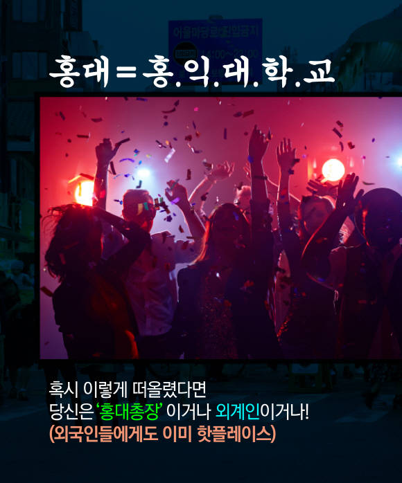 홍대에서 봐~ ‘홍대 = 홍익대학교’ 혹시 이렇게 떠올렸다면 당신은‘홍대총장’이거나 외계인이거나! 어느덧 젊음과 문화의 메카를 지칭하는 단어로 자리매김한 홍대(외국인들에게도 이미 핫플레이스). 그 중에서도 심장부를 꼽자면 단연상상마당 아닐까 한다. 그 이름처럼 상상마당에서는 층마다 다양한 상상이 실현되고 있다.