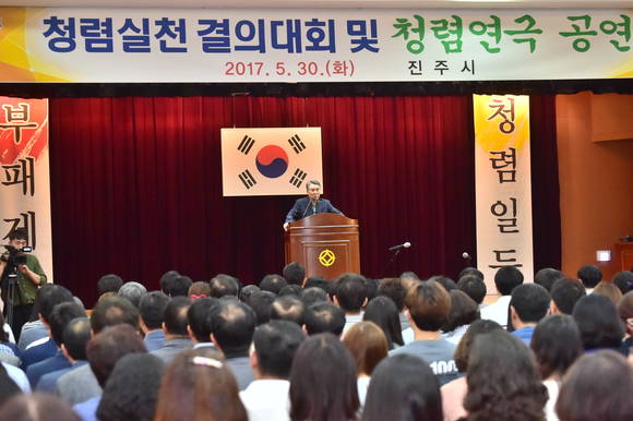 [프라임경제] 진주시는 청렴한 공직윤리 가치관 정립과 신뢰받는 투명시정 구현을 위해 30일 공무원 350여명이 참석한 가운데 '청렴실천결의대회 및 청렴연극공연'을 실시했다.