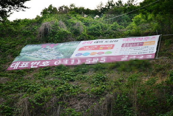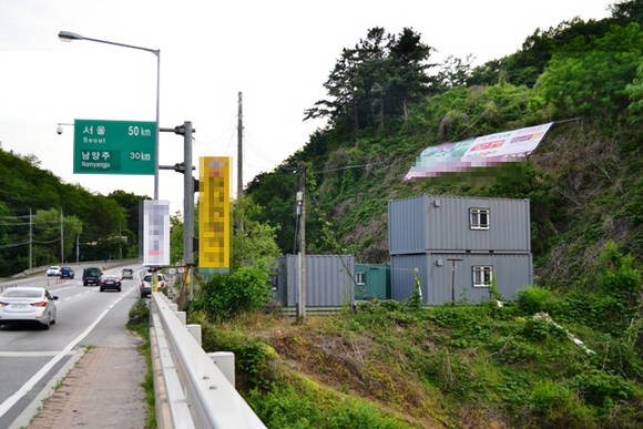 지난 30일 청평검문소 인근 서울 및 남양주 방면으로 가는 길 우측 야산에 지역내 부동산 분양 관련, 불법현수막이 설치돼 있는 것이 포착됐다.