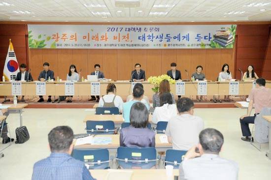 [프라임경제] 광주광역시의회(의장 이은방)는 31일 광주대학교 도서관 세미나실에서 '광주의 미래와 비전, 대학생들에게 듣다'를 주제로 토론회를 개최했다. 광주시의회와 광주대학교대학원이 공동으로 주최한 이번 토론회는 광주시 청년정책에 대한 현장의 목소리를 듣기 위해 마련했다.
