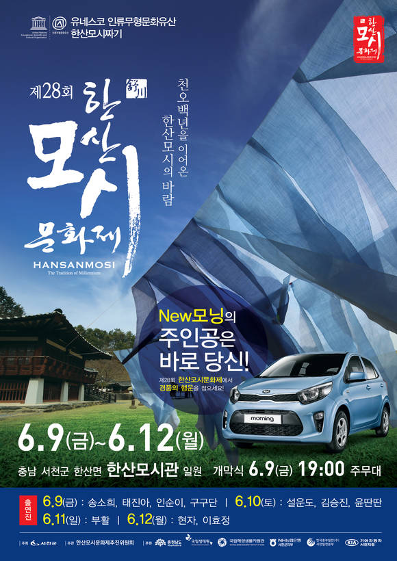 제28회 한산모시문화제는 ‘천오백년을 이어온 한산모시의 바람’이라는 주제로 70여개 참여프로그램을 선보일 예정이며 경품추첨, 유명가수 축하공연 등 풍성한 축제 구성을 위해 막바지 준비를 가하고 있다.