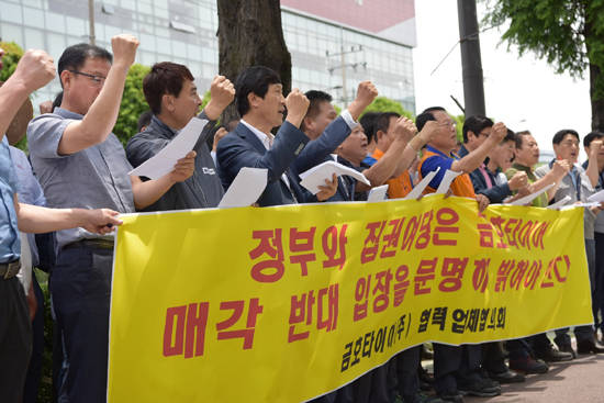 이들은 "산업은행을 비롯한 채권단은 불합리한 매각조건을 강요하며 중국 더블스타로의 매각을 강행하고 있으며, 이로인해 금호타이어 임직원과 협력업체들의 생존권에 심각한 위협을 초래하고 있다"고 주장했다.