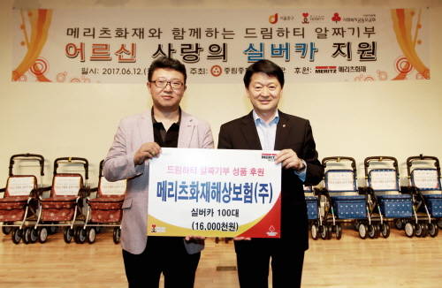 [프라임경제] 메리츠화재(000060·대표 김용범)는 12일 서울 중구 노인 100명에게 활동보조기구인 실버카를 중림사회복지관에서 전달했다.