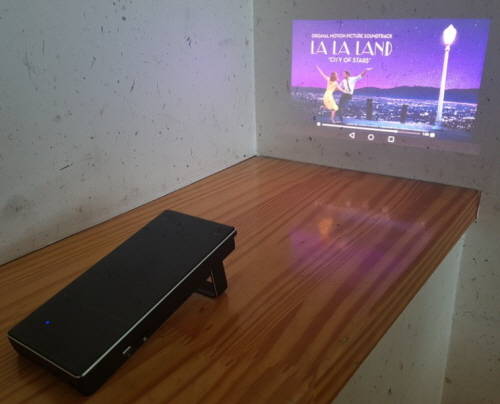 또 LG유플러스의 인기 애플리케이션 'U+프로야구'가 탑재돼 야구경기 영상도 볼 수 있다. 이밖에 앱스토어인 '원스토어'가 내장돼 내가 원하는 앱을 추가 설치하는 일도 가능하다. "앱 설치가 가능하다니…" 스마트폰이 프로젝터 기능을 갖춘 것 같다.