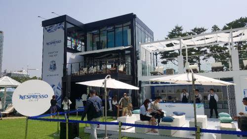 프리미엄 캡슐 커피 브랜드 네스프레소가 15일 코엑스 동문 광장에서 '아이스 팝업 라운지(Ice Pop Up Lounge)'를 오픈했다.