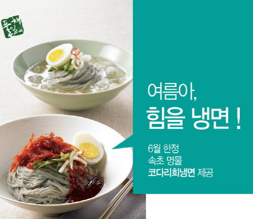 [프라임경제] 한식뷔페 풀잎채가 6월 한정으로 진행 중인 '여름아, 힘을 냉면' 이벤트가 좋은 반응을 얻고 있다. 30일까지 속초의 명물 '코다리회 냉면'을 제공하는 행사다. 코다리회 냉면은 함흥식 회냉면이 홍어나 가자미를 쓰는 것과 달리 코다리회를 고명으로 사용한다.