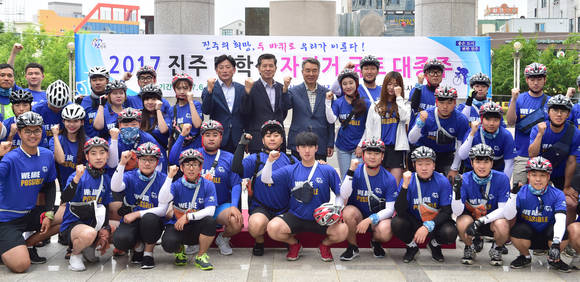[프라임경제] 진주시 대학생자전거연합회가 26일 올해 진주 대학생 자전거 국토대종주 발대식을 열고 대장정에 나섰다.